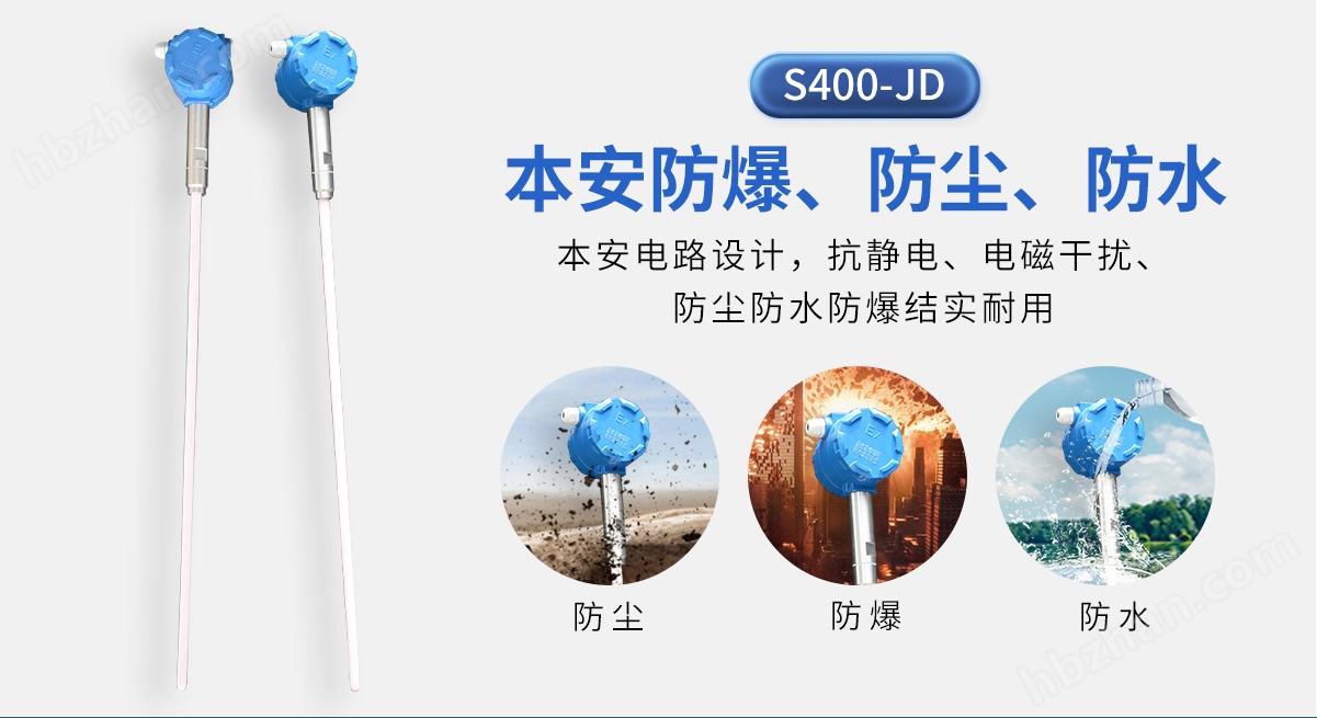 操作环境保护 | 保护等级:IP66/NEMA4 铝合金壳体,适合非腐蚀性环境内安装,不锈钢探针 |